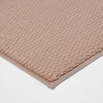 Experience lush comfort underfoot when you step out of the bathtub onto this 2-Piece Fuzzy Foam Bath Rug from Threshold™. Featuring an allover fuzzy pattern in a solid hue, this lightweight bath rug adds texture to your bath space, and it easily pairs with the rest of your decor. With a faux fur construction, this bath rug provides a comfortable feel underneath your feet, while the PVC backing will help keep it in place. Toss alongside your bathtub, shower stall or in front of the sink for an instant update.