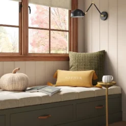 Add a welcoming fall accent to your living room or sitting space with this Oversize ‘Gather’ Embroidered Herringbone Lumbar Throw Pillow from Threshold™. The decorative throw pillow is adorned with an embroidered white script that reads “Gather” on a herringbone-textured background in gold-brown and matching tassels on the corners to accessorize your furniture for festive gatherings and celebrations. Featuring a 100% cotton exterior with soft filling, the oversized lumbar throw pillow adds that extra amount of comfort and style to your sofa, chair or bench.