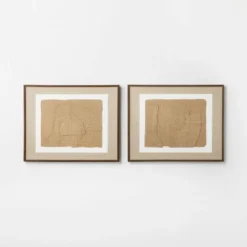 (Set Of 2) 16″ X 20″ Jute Framed Wall Canvases Walnut – Threshold™ Designed With Studio McGee