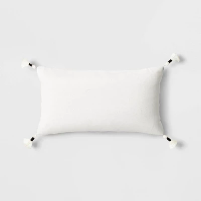Make over your bedroom or living space with the contemporary charm of this Oversized Modern Geometric Patterned Lumbar Throw Pillow from Threshold™. Made of 100% cotton with soft filling, the rectangle throw pillow is adorned with an abstract geometrical pattern and features matching tasseled corners for a fun look. Whether you lounge in your favorite recliner, read a book on the couch or watch TV curled up on your sofa, you’ll love leaning on this oversized lumbar pillow.